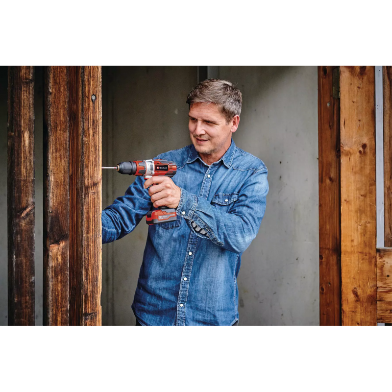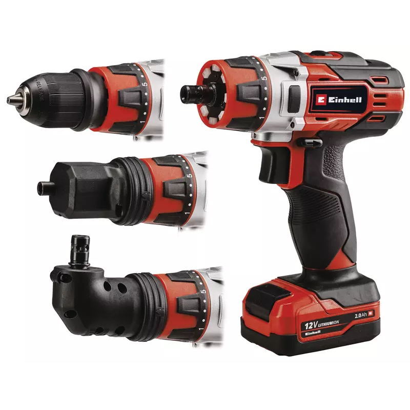 Το Einhell TE-CD 12/1 3X-Li (1x2.0 Ah) 12 V δραπανοκατσάβιδο μπαταρίας καθιστά δυνατό: Δύο εργαλεία σε ένα για λεπτό ρυθμιζόμενο βίδωμα και ισχυρή διάτρηση σε ξύλο και μέταλλο. Αυτό διασφαλίζεται από την υψηλή απόδοση 2 ταχυτήτων. Περιλαμβάνεται επίσης φορτιστής υψηλής ταχύτητας για την μπαταρία χωρίς αυτοεκφόρτιση, οπότε η μπαταρία μπορεί να φορτιστεί και έτοιμη για χρήση σε 45 λεπτά. Χάρη στο αφαιρούμενο τσοκ 10 mm έχετε τη μέγιστη ευελιξία ενώ εργάζεστε. Η συμπεριλαμβανόμενη επέκταση ορθής γωνίας καθιστά δυνατό το βίδωμα και τη διάτρηση σε στενούς χώρους, όπου ένα κανονικό τρυπάνι μπαταρίας θα είναι μεγάλο. Περιλαμβάνεται επίσης μια επέκταση excenter, η οποία σας επιτρέπει να εργάζεστε σε γωνίες και άκρα χωρίς δυσκολίες. Το στιβαρό μεταλλικό γρανάζι έχει σχεδιαστεί για μέγιστη αντοχή. Για εργασία με ακρίβεια διαθέτει ηλεκτρονική ρύθμιση στροφών. Ο φωτισμός LED παρέχει βέλτιστο φωτισμό ακόμη και σε σκοτεινές γωνίες. Για φιλικό προς το χρήστη χειρισμό, το δραπανοκατσάβιδο μπαταρίας έχει εργονομικό σχεδιασμό και μαλακή λαβή. Περιλαμβάνεται επίσης φορτιστής υψηλής ταχύτητας και μπαταρία.
